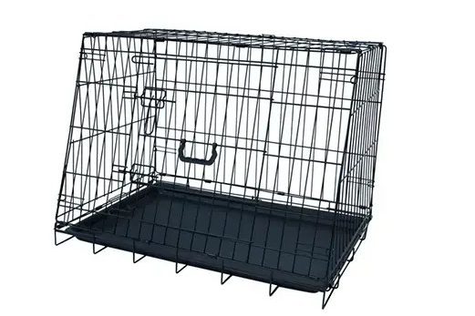 A dog travel crate is a secure container used to transport dogs safely in vehicles. It helps keep the dog contained and protected during journeys, while preventing movement around the car that could distract the driver.