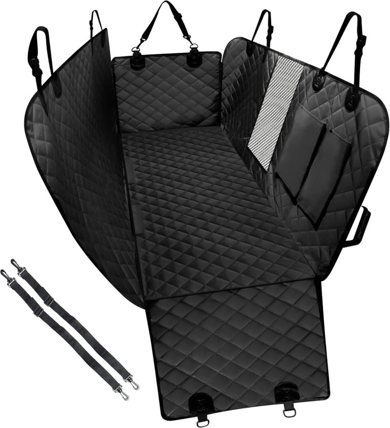 A dog car hammock is a protective seat cover that attaches between the front and back headrests, creating a hammock-style barrier across the back seats. It helps protect the car interior and prevents dogs from falling into the footwell during travel.