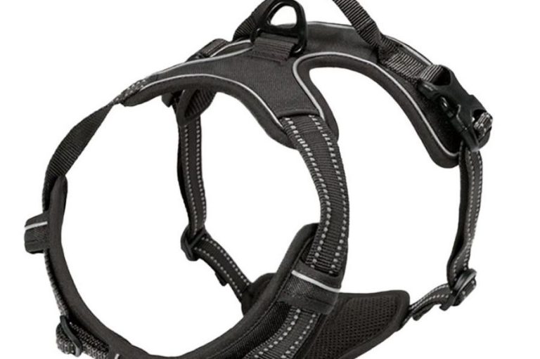 A front-clip harness has the lead attachment point on the dog’s chest, rather than on the back. When the dog pulls, the harness gently redirects the dog back toward the handler, which can help manage pulling during walks and training.