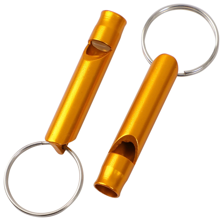 A dog training whistle is a small handheld whistle used to give consistent sound cues during training, particularly for recall and distance commands. The sound travels further than a human voice, making it useful for training in open spaces.