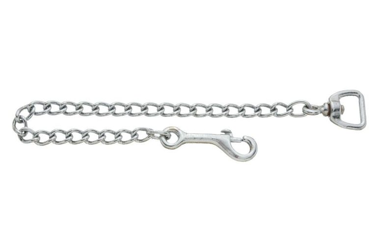 An anti-chew chain lead attachment is a short section of metal chain that clips between the dog’s collar and the lead. It is designed to protect the lead from being chewed, particularly by dogs that turn back and bite the lead during walks.